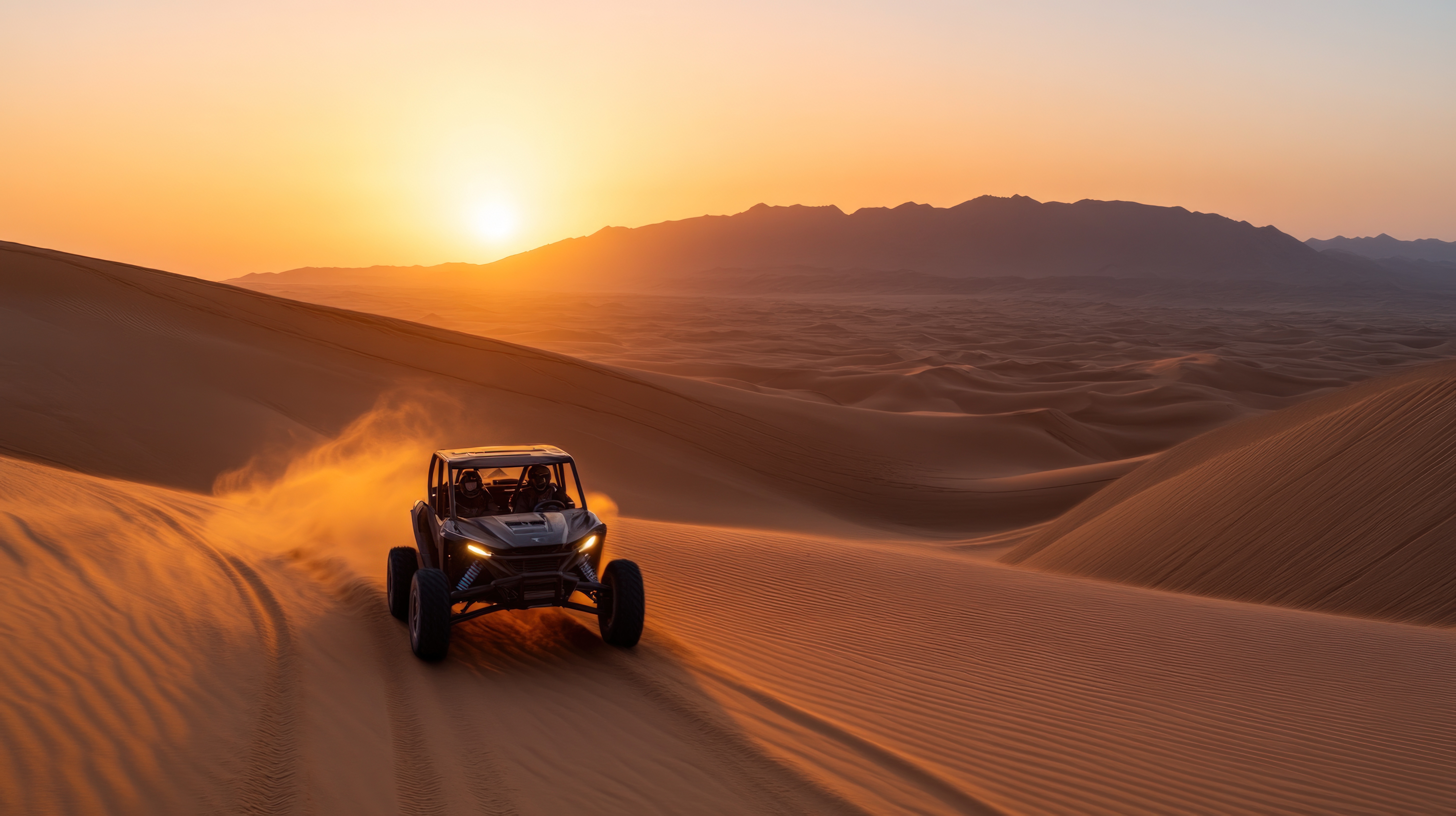 Published at 5824 × 3264 in Off-road vehicle in desert at sunset